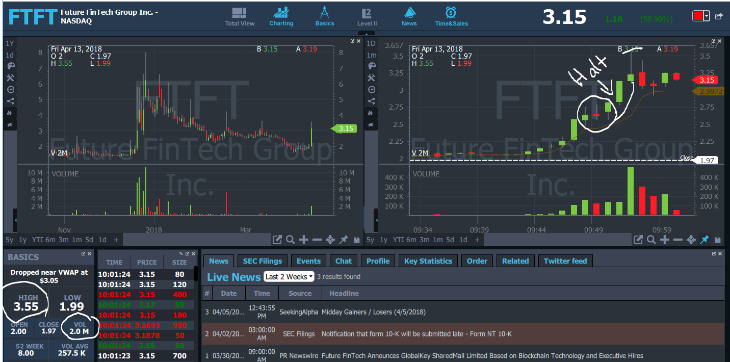 9:59AM - damn damn damn, I was getting ready to buy some int he 2.60s as it was consolidating a bit but I hesitated and didn't take a position. I did hesitate a bit because I had no clear risk set in mind because the dip was barely working in, and I wanted a little bounce to get in and then use the low of the dip as risk. Bu that didn't happen as minutes later it goes and spikes almost a $1/share. It also did get a 5 min halt that I would've honestly been scared to be in although the odds were that it would continue to spike. If I would've longed some in the 2.60s I would've definitely sold into the spike right after the halt. Although it is now looking like it wants to hold this spike and get ready for another run. I don't want to chase it up here though. (7)