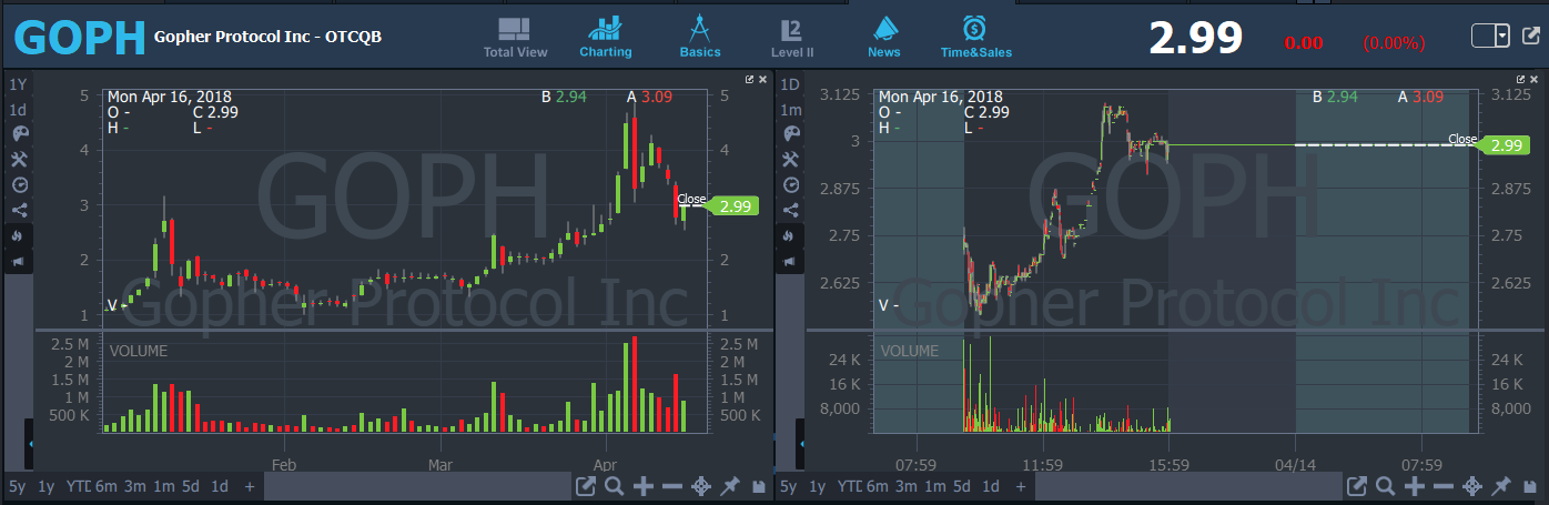 GOPH - looked to be having a first green day going into late day Friday. Looking for dip buy opportunities near key support (4)