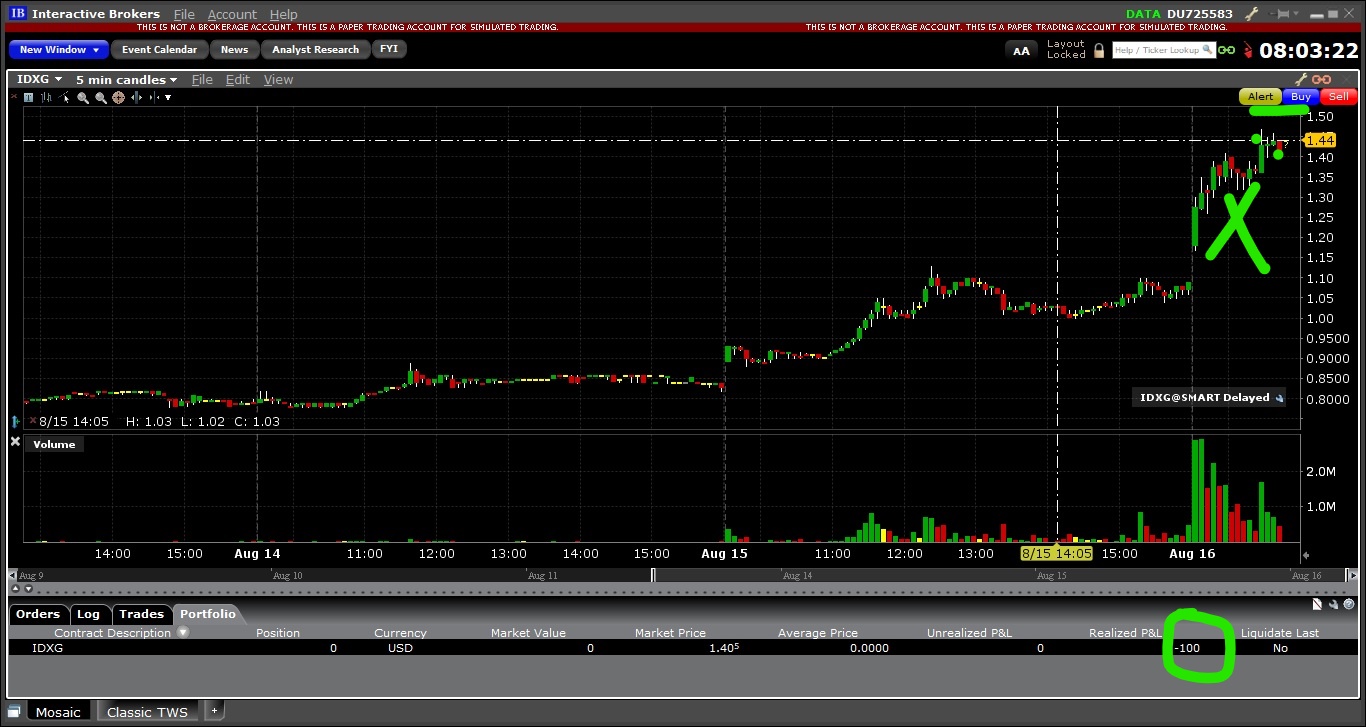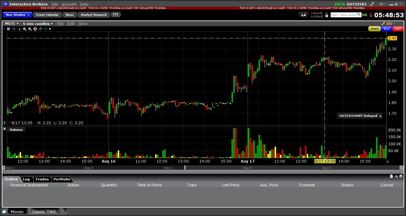 $MGTI was on my watch list last night but due to low volatility I didn't take the trade and $IDXG was my only trade this week and gave me a $100 loss. Currently I'm $200 down for my five weeks of demo trading during my penny stocks learning experience :). Unfortunately Interactive Broker's isn't loading up my activity statement for my demo account this will be uploaded ASAP.