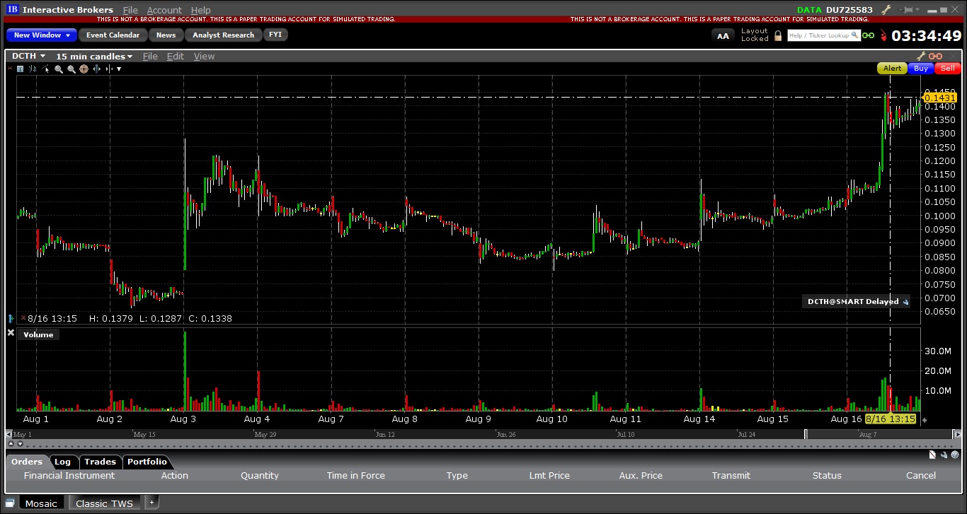 $DCTH strong in pre market will wait and see if it can hold at the .1500 level for a small buy position targeting .1700 with a quick exit if it dips to around .1450 or if interest slows down and price action tightens up.