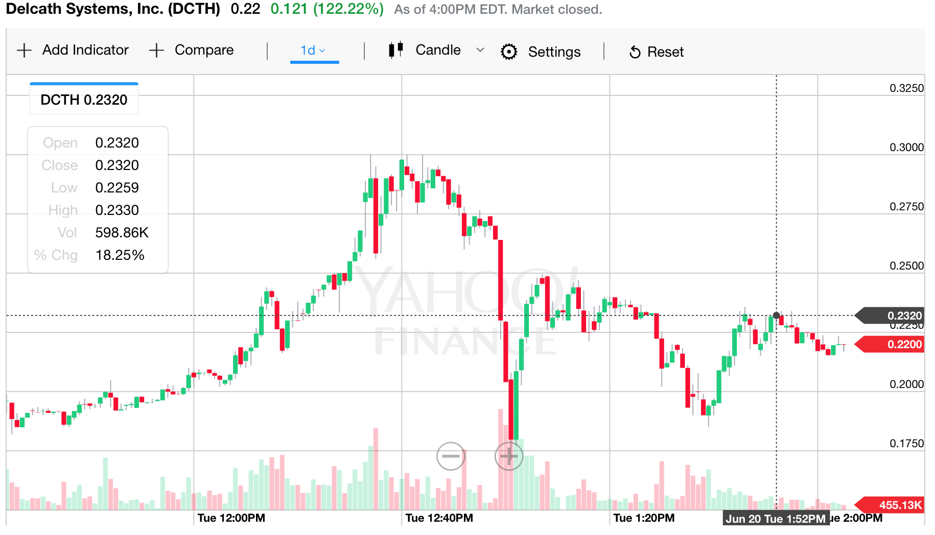 I could have profited +$245 (49%) on DCTH trade today. But I got emotional and greedy because I wanted more so I waited thinking it would breakout a little higher. I stopped watching it for a few minutes; but by that time I went back and checked, it had dropped.