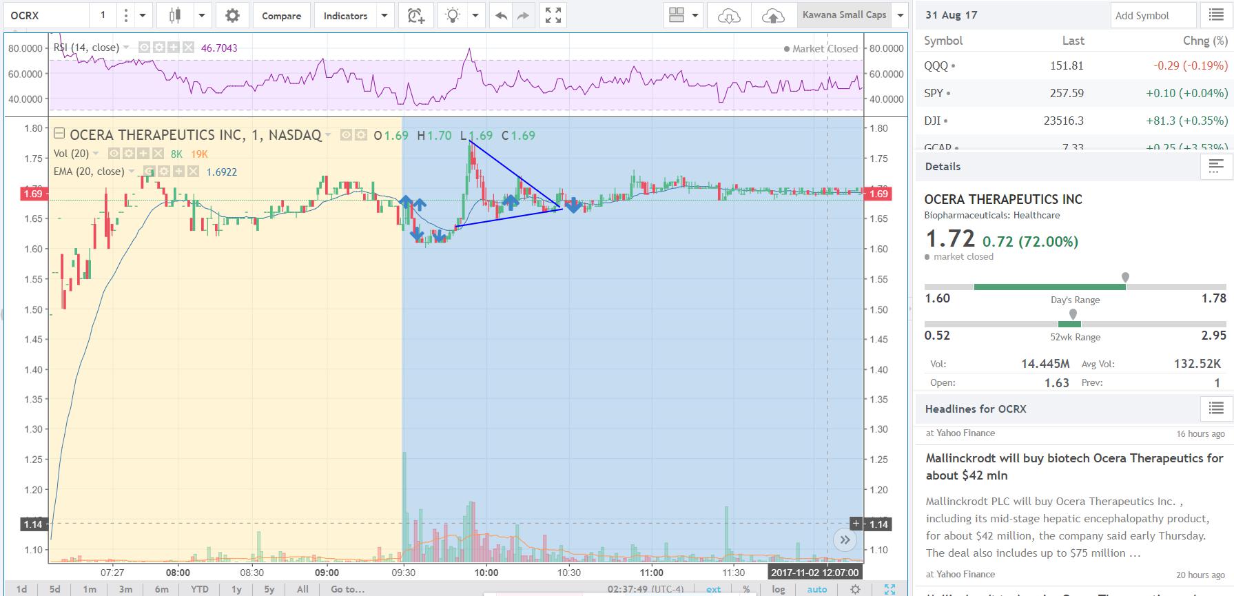 Make sure entry is making a new high on the one minute candle. OCRX Gap and go.