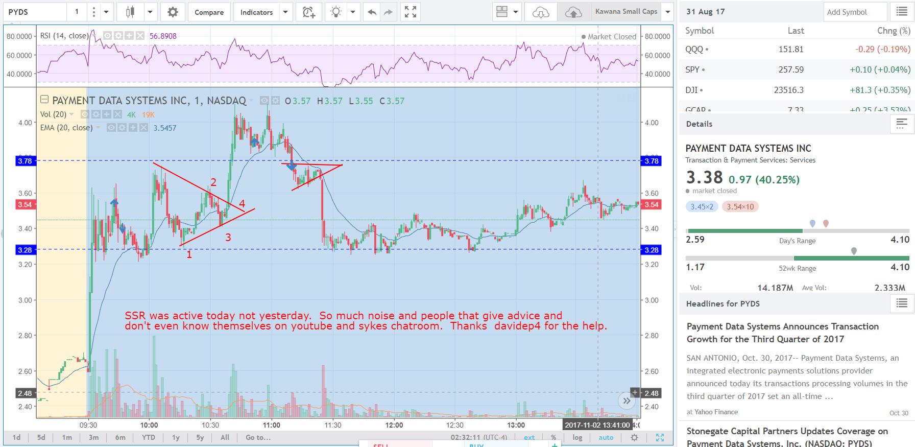 Take profits before intraday resistance. 3rd day up. PYDS moved from 2.6 to 4 almost 80% and I'm expecting it to run to 5?