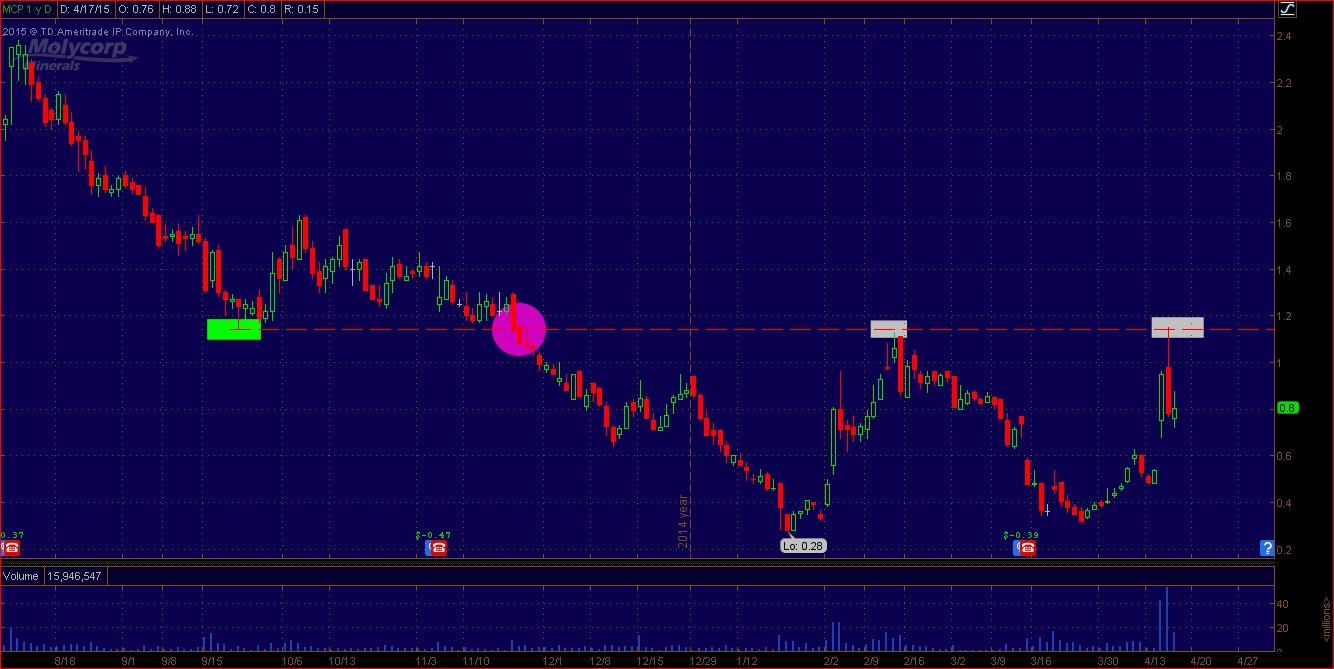 @PatrickST @PatrickST Hopefully this will clarify your confusion. I'm only going over the chart from a technical perspective. Now, Generally, when support is broken, it will turn to resistance. Ideally, the same concept applies with $MCP. If you look at the chart, I boxed (in green) prior support for MCP. Then I boxed prior/ideal resistance (in red) for MCP. When a stock experiences a breakdown (i.e. support being broken), generally resistance will occur. There was prior support (in green), then it broke down (pink oval). Later, there was a test of its resistance (white). The resistance failed, and the stock was going to test once more (next white we referred to). At this time, there seemed like there would be a breakout, however, it failed, proving itself to be another point of resistance where Tim G. shorted into. Since I do speak in hindsight, when you notice that the stock does reject breaking out of its resistance, you then put in a starter short position (in this case) with a risk of the high of days, so if this high is broken, then maybe there might be a breakout (in this case there was no breakout).