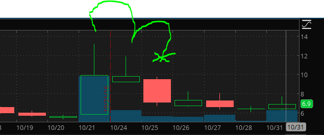 Yea does look like some topping action, only thing that would make me play it a bit extra safe is that the bottom graph still closed higher than its first spike did, and whoa just seen this, the little earning winners symbol, I wouldnt be shorting man, thats one of tims main rules not to short earning winner, i think mainly cuz hype around earnings/contracts lasts longer than PR's. Just my thoughts, be careful and good luck, curious to see how it reacts