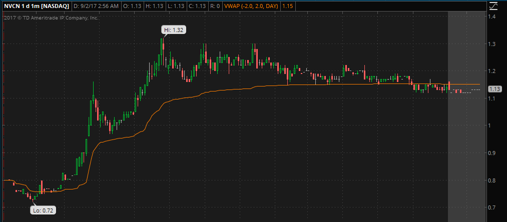 Again, very similar to $HTGM where it had a morning spike and closed -14.39% lower from it's highs of 1.32. Again, based on memory and statistics this pattern usually continues to spike the next trading day. But funny enough, like $HTGM the big picture (daily chart) is absolute horse-crap, where it had a huge run up and ever since then had a crow chipping away accounts slowly.