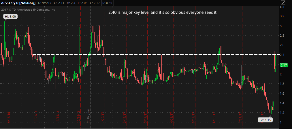 Seeing this stock has a lot of fake outs and has spiked twice in the morning but the spike failed instantly, if this spikes tomorrow I will look to short using 2.40 as risk
