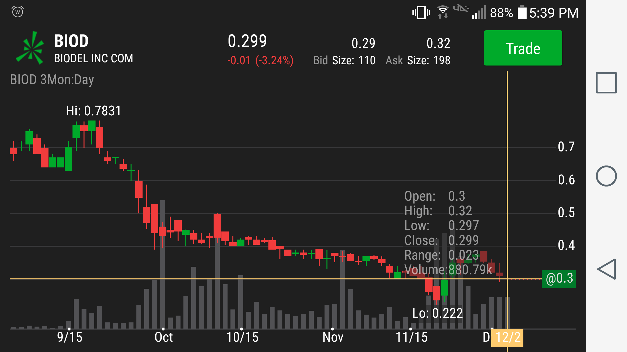Trading on mobile, I can't watch very many tickers effectively. So this will definitely be on my watch list. Look to get in around $0.35.
