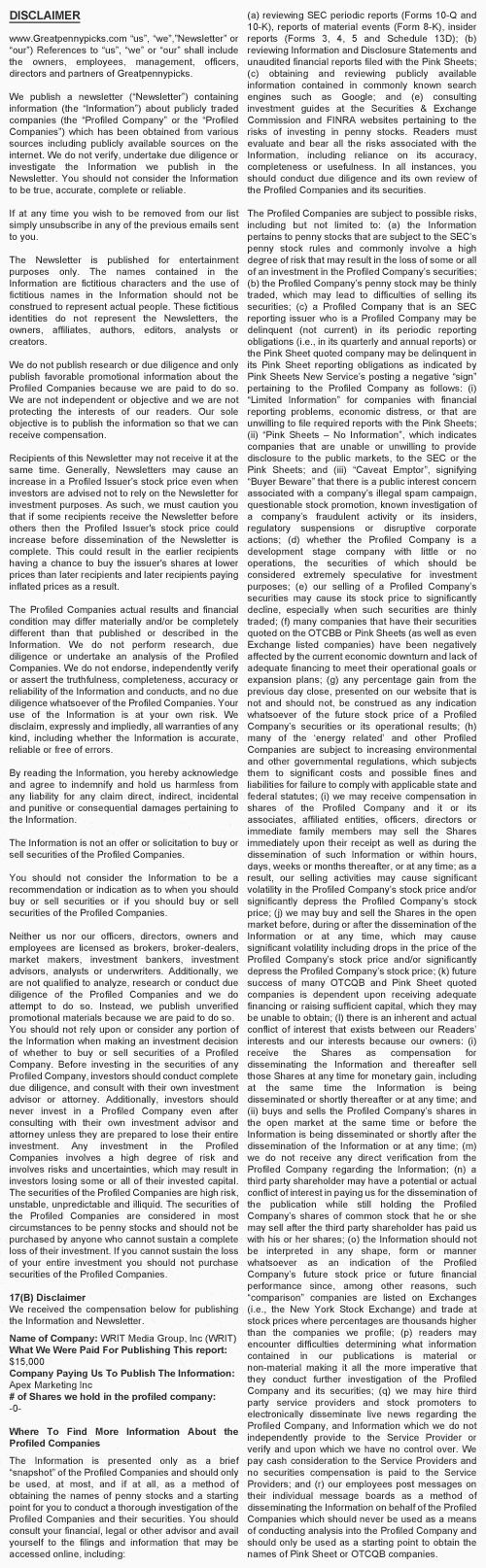 WRIT is a golden opportunity to buy shares in a company that is still trading at bargain prices of $1 per share and I can tell you with near certainty that its shares will be at around $2.50 next week.