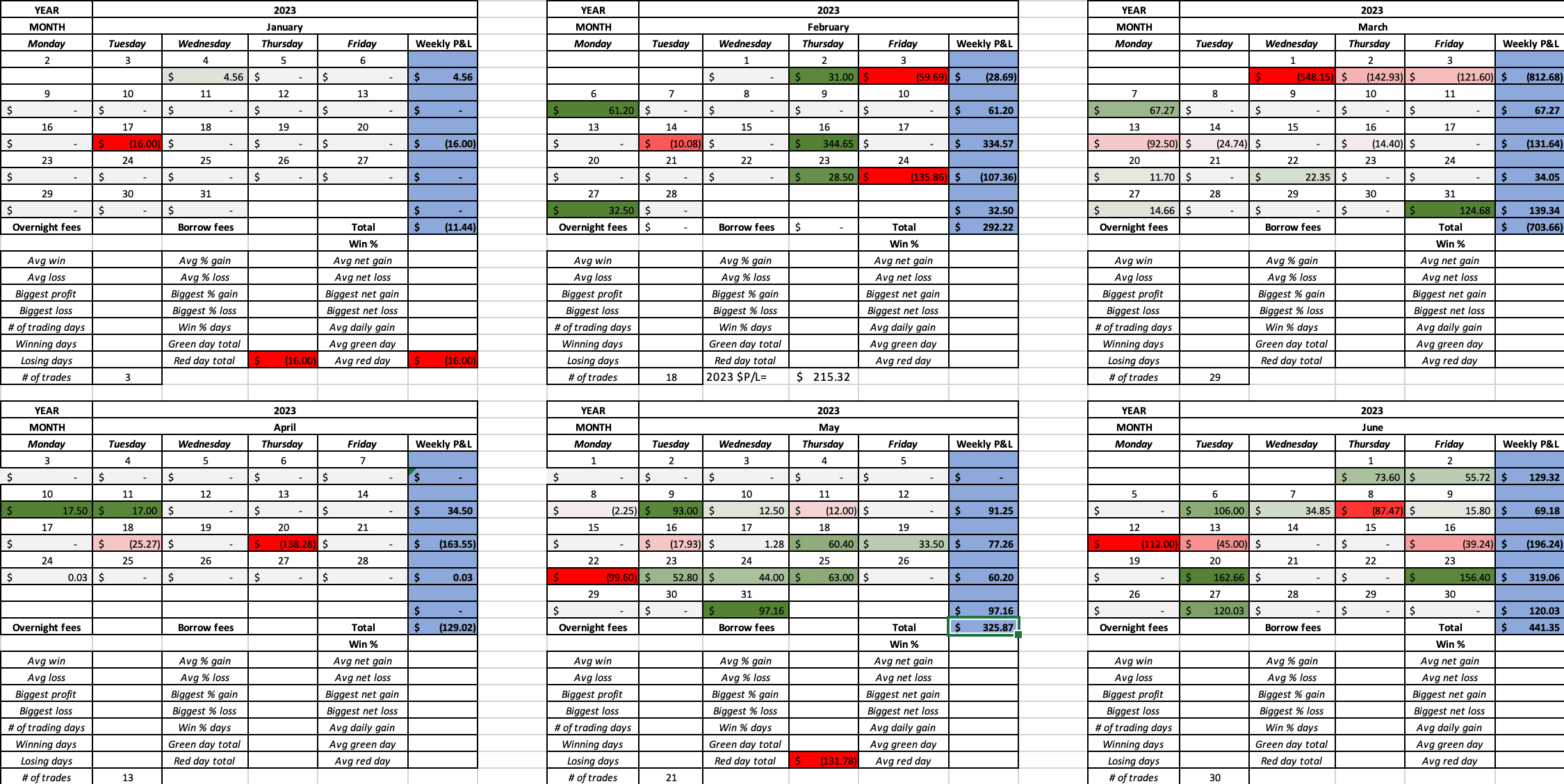 8:58 AM, 06/28/2023 I was able to make it above the break even. I have gone through many trials and tribulations to reach a point where I think I have made great progress in minimizing my losses (for the most part) and letting my winners ride. I still need to stay disciplined, remembering that one bad trade can wipe away all my hard work. If I think I'm good at trading, I'm not, because the market will humble me as it has done countless times. Profitable trading is about being a good loser and accepting when my theory/plan is not working while being patient enough to sell winning trades at my profit target and potentially letting them run further. My trading and knowledge account is a business that I must take seriously if I want to reach the big longer-term goals that I have. *Make and maintain a million dollars by age 25*. I am 21 now, working as an intern at a publically traded company listed on the S&P. I have been learning for 5 years and trading actively for 3 years. Trading is not just a side hobby for me and it never will be. Some insights I have gained: - My strategy has changed considerably over the years. Where I was ruled by FOMO and trading failing/unconvincing breakouts I have now shifted to dip buying because prices often correct if the stock has a good setup which in turn is a good buying opportunity. My strategy also yields greater risk to reward if I'm disciplined. - I don't need to trade every day, in fact, I shouldn't be. I should be picky and come out of "retirement" to "trade like a sniper." - When I see a great pattern forming to create a good setup I should be confident and go in with size (depending on market conditions.) - Don't be hesitant to make a trade just because I want to retain my profits over a certain threshold but if I am hesitant I should recognize that the entry price is not ideal so I should choose from options such as: not trading it, waiting for a better setup, or getting in with smaller size. - Tracking my trades has made the world of a difference. I started doing it in August of 2022, something that I should've done much earlier. Every trader must track and review their trades if they ever want to realize the chance of being a consistently profitable trader. - I still have a lot more work to do. Some shorter-term goals: further tightening my risk, adding more data metrics for review, keep learning/studying, and adapting to changing market conditions. TRADING IS A MARATHON & NOT A SPRINT