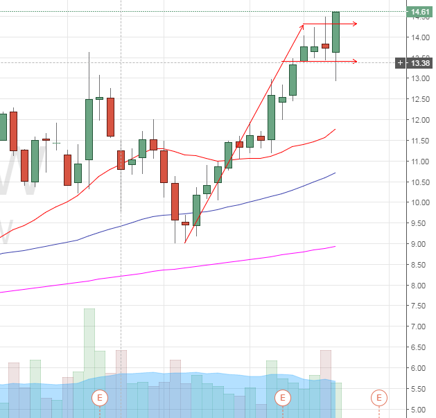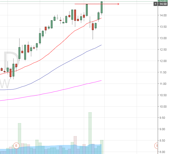 - If the price gap up around 14.75 and stay for a moment at this price, I will buy it.