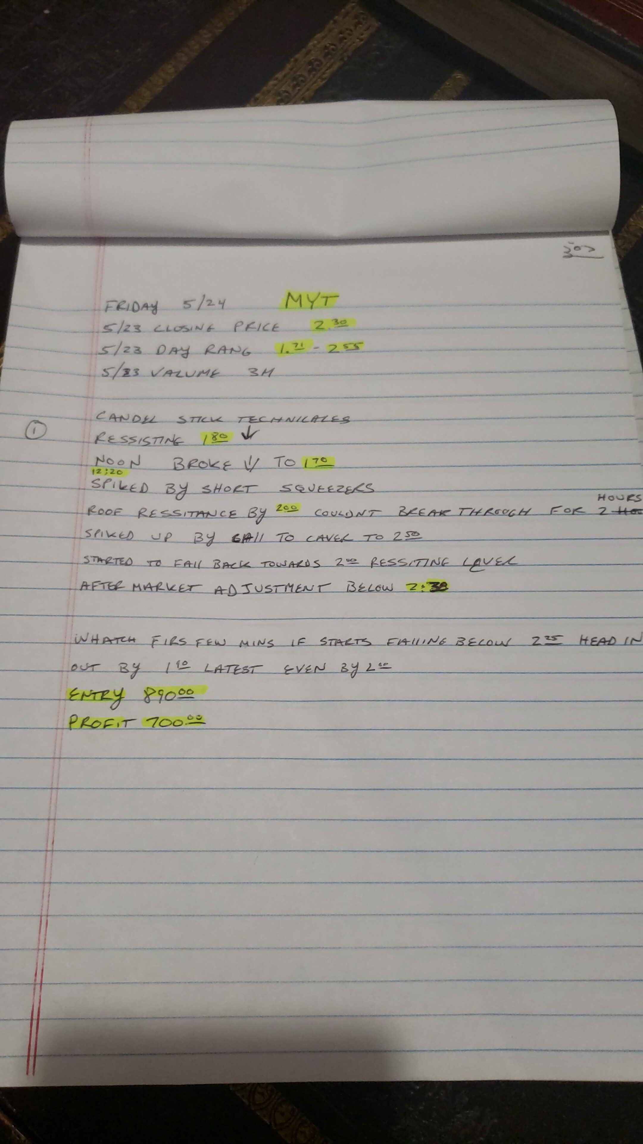 My today's initial test. It worked See the results of my study sheet from an evening prior (the 23rd) This is a study sheet I have worked on based on the learning I ha e learned from Tim during the day. I ha e desided ti do the trade. I didn't end up doing it didn't want to short on my first trade. Instead I did CCYC