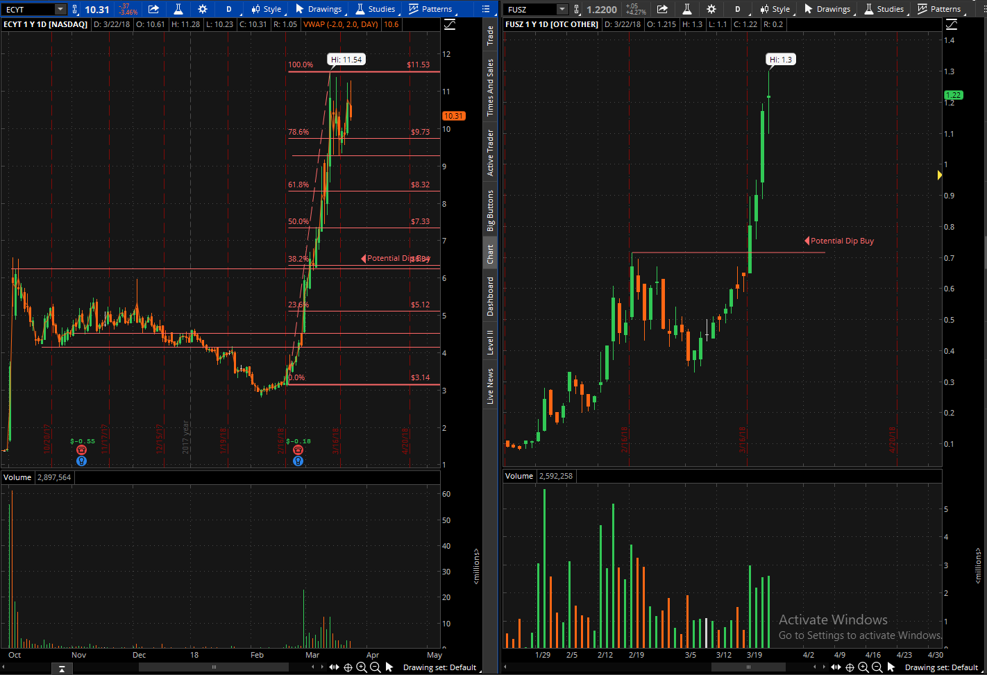 $ECYT - Also looking for a dip buy on this one but more unlikely as it isn't as clear of a chart as $FUSZ, but mainly looking at the 6.3$ zone for a dip buy.
