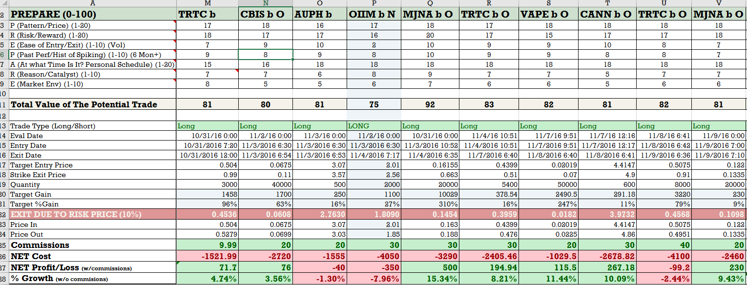 This has been working for the cannabis stocks as there is a lot of positive sentiment in the market for them. Here are my most recent earnings from my spread sheet. All of my trades are verified via TDAmeritrade and can be seen in my trades.