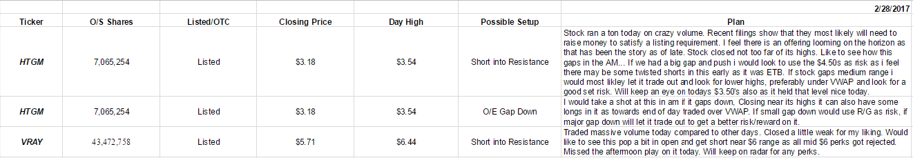2/28/17 Watchlist, $HTGM, $VRAY Posted Feb 27, 17 8:25 PMbyb_m0rtTickers HTGM, VRAYViews 310 / 0Received 0 KarmaJoin now or log in to leave a comment