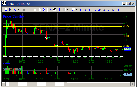 I have $4.95 per trade up to 10k shares deal with them. And if you get bought out on the bid when buying and sell on ask when selling is minimizing ECN fees to $0.25 cents per trade. I use mostly 200-400 shares because it is giving me more leverage to exit losing trades faster. With entry on a good setup risk of trade going against you is minimal. Say I buy 400 shares at $5. My risk exit or hard stop will be at $4.95. And if a trade starts going in my favor I'll move that stop to $5.05 or $5.10.