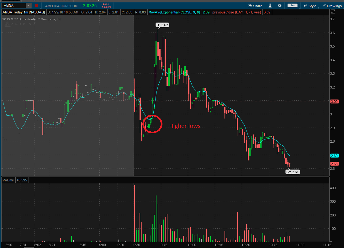 -AMDA: Best case weak open, consolidate around 3ish level, higher lows and squeezing shorts. Will be looking for higher lows. However if it gaps down and morning panic -> Ignore. If it opens strong and morning spikes, I will look for trend reversal, to short into (if I find shares to short), but will be looking for lower highs, because this still can squeeze.
