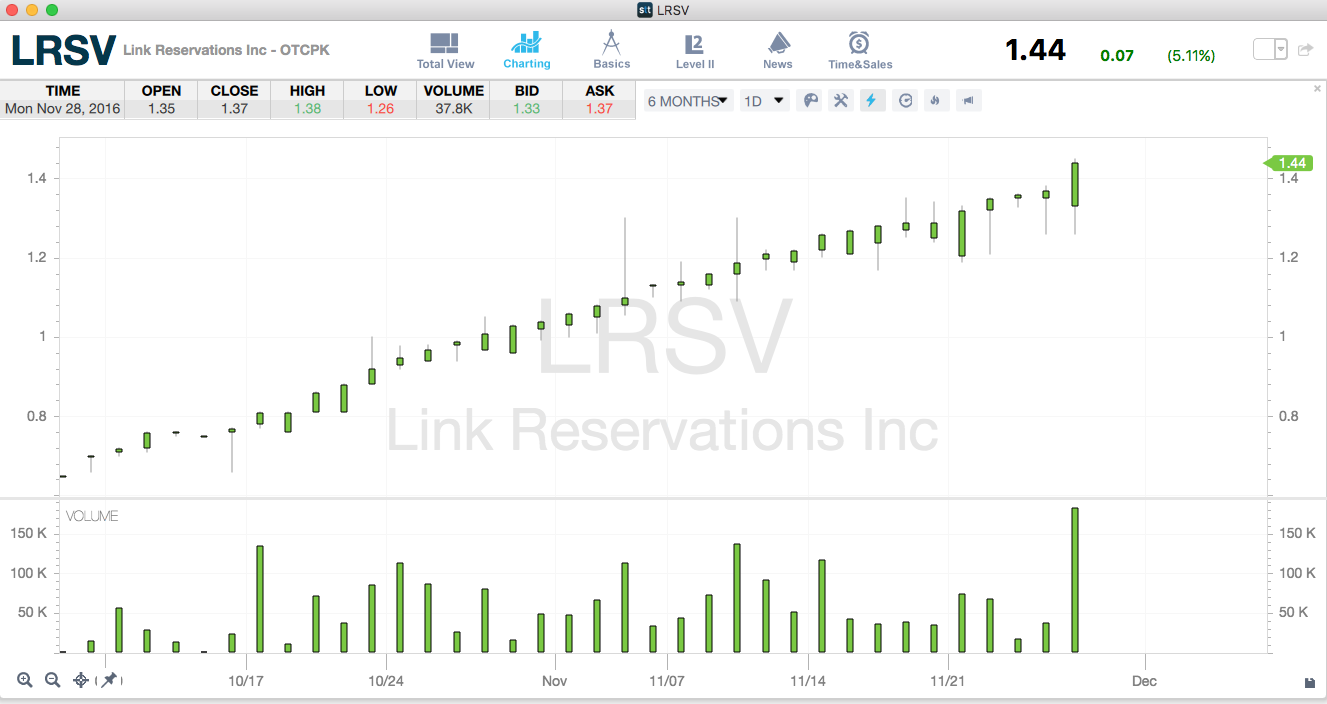 $BBGP was a pump and dump that was almost identical to $HADV. It was on my watchlist for at least 2 weeks and I was alerted by a fellow student in chat. After studying the chart from $HADV before its crash, you can compare it closely to the $BBGP chart and you can look at $LRSV doing the same thing coming soon (only it has a larger float size so it may not drop as quickly). This is not rocket science people. The only additional research I did was to check the pump email dummy account I created (again because of Tim's teachings) for the ticker $BBGP and sure enough, I received pump emails from a promoter. It came from www.stackedbid.com but I believe they got my email address from one of the other promoters I signed up with since I don't remember signing up for www.stackedbid.com (although I could be wrong) I was getting them almost daily until 11/22 when I noticed it was the last time I received one. I figured at that point, this stock was floating on the hopes and prayers of its investors and nothing more so I did what Tim teaches and waited for the first red day which was today. And, sure enough, like clock work, it dropped more than 2 dollars a share. I alerted this in chat before the crash so I am really hopeful that some people were able to short it and profit off of it. I did not play the dip/bounce because it's a pump and very scary for me. Although, money could have been made on the dip buy.