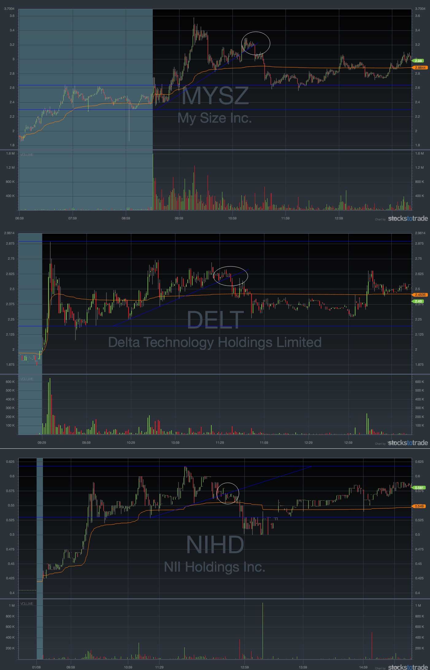 Three charts in the same day with similar patterns - $MYSZ $DELT $NIHD From 1/08/17