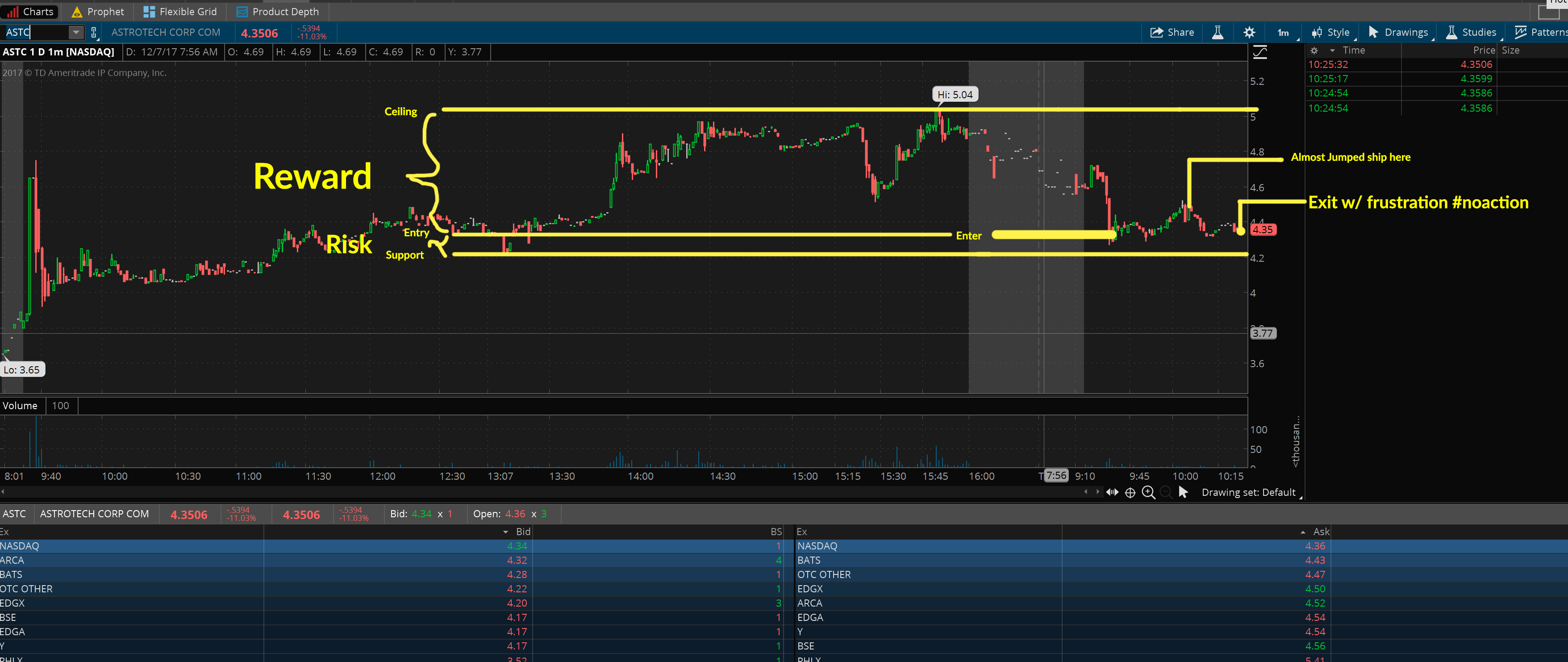 Why did you exited the trade? ASTC could still be able to spike intraday or at the end of the day. I would have hold for sure. Anyway you learned a lesson here again ;)