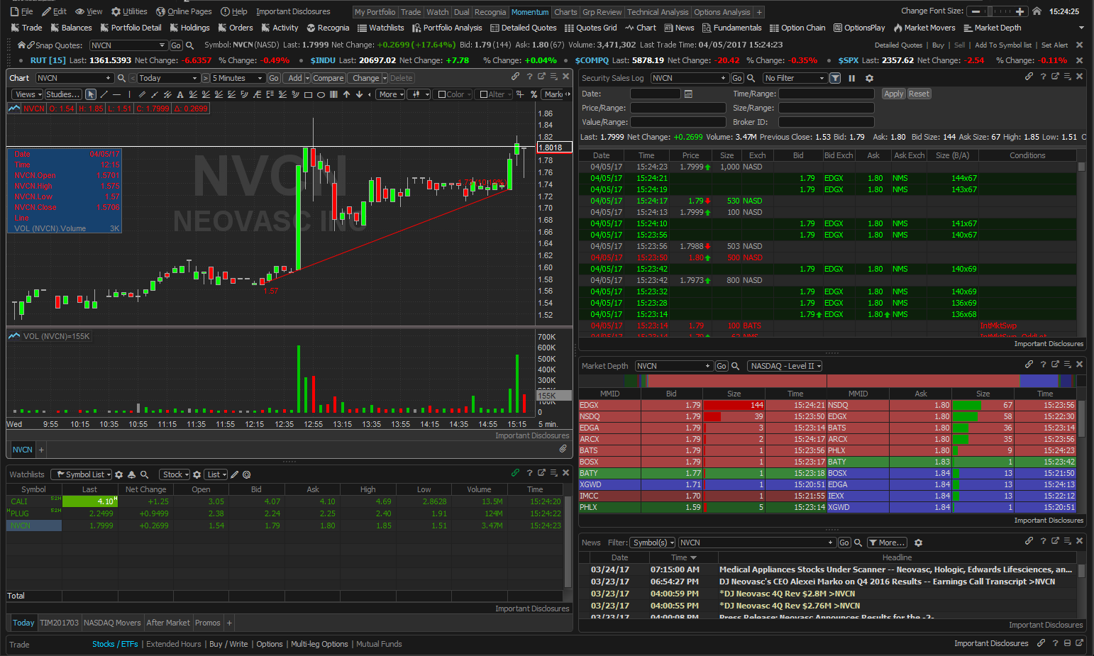 FNCX popped up on my screener 2 May 2017 @ .70. Jumped up .20 3 May unfortunately, I didn't get a good entry. I was watching stocks on Tim's watchlist first. By the time I circled back around to my new additions from my screener I missed the jump. FNCX went down 4 May, and I saw this as the first red day pattern...a short trade signal. I dropped it from my watchlist and moved on to other tickers, but it's back on my list for a closer look.