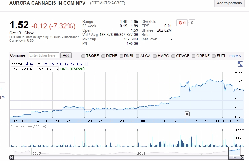 OTCMKTS-ACBFF- A Canadian Marijuana Stock that is due for a spike. It has an uptrend as of lately as well that has potential.