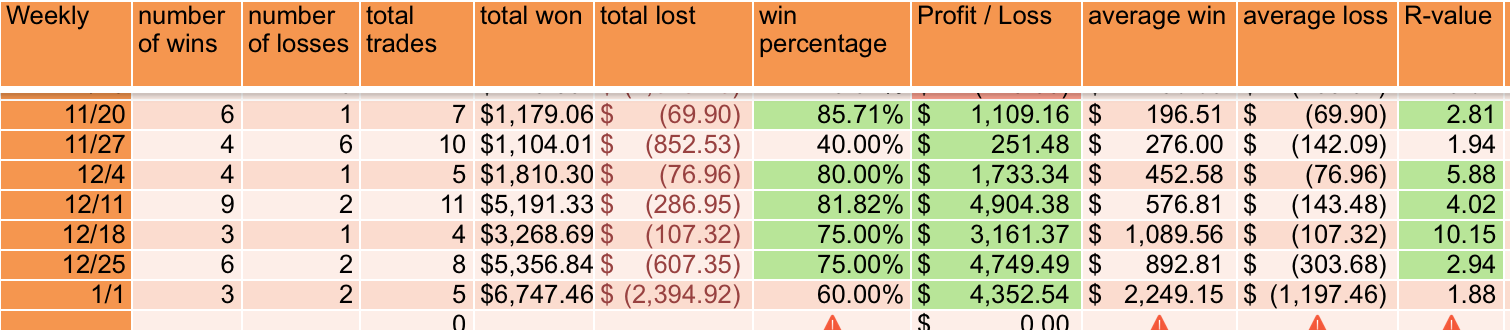 I feel like six green weeks is enough to start showing some true consistency and skill more than luck. This is my seventh green week in a row. I've now made $20,281 from my low point. That is a 256% increase from my low point, and overall I’ve made a respectable 20% increase from my starting account size in around 8 months.