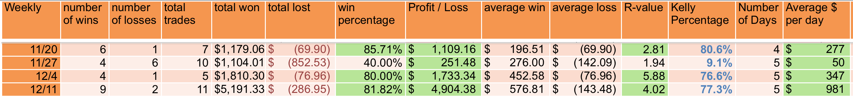 @huperauxano the R-value is just the ratio of my average win to my average loss. I’m not ready to talk about the Kelly percent yet, I don’t want to lead anyone down the wrong path there.
