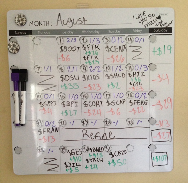 Since I've come back from the summer my overall P/L is -$12.26 (1 green trade in July)