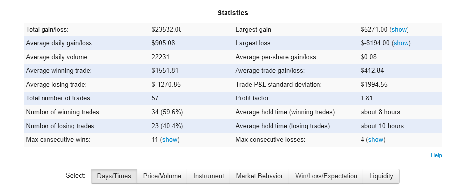 Good luck to all that are just starting out or are still trying to become consistently profitable. The best thing I can say is to stick with it. I put in well over 10,000 hours in 4.5 years to be trading like I am now, and I still have a ton of room for improvement.