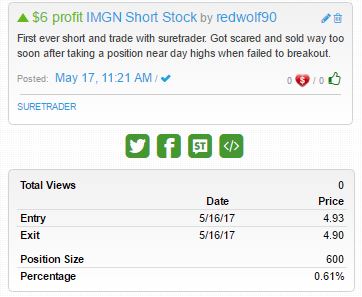 First Ever Short and Trade With Suretrader Still getting used to their high commissions but feel very comfortable with DAS platform... Posted May 17, 17 11:26 AMbyredwolf90Views 450 / 1Received 1 KarmaView previous commentsredwolf90 May 17, 17 11:17 PMI think suretrader is perfect for building an account though that 6:1 leverage is so tempingmhill9791 May 18, 17 12:39 AMI use etrade, but about to open up an account any day. What kind of surprises do I have with commissions on shorts?mhill9791 May 18, 17 12:40 AMI have the account, just in the process of transferring funds.redwolf90 May 18, 17 9:54 AMNot really any so far...I just wouldn't short overnight...Join now or log in to leave a comment