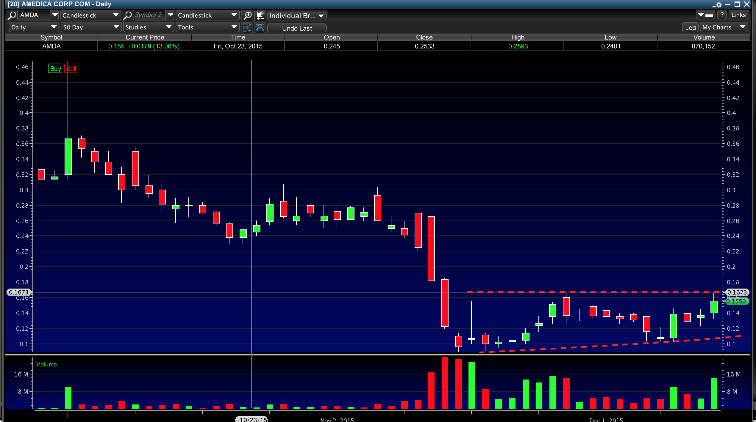 Hey guys I've looking to $AMDA for already 2 months. This stock has hit his bottom already. The company on November 10th they submitted a 24-Month Clinical Data to FDA for Clearance of Composite Interbody Spinal Device. However if you look at the graph they're forming a triangle pattern. I will keep my eyes on it because it can have a good potential going back to the 0.40s again or more. Thanks for reading this and I will like to hear opinions in this stock. Feel free to comment on it.