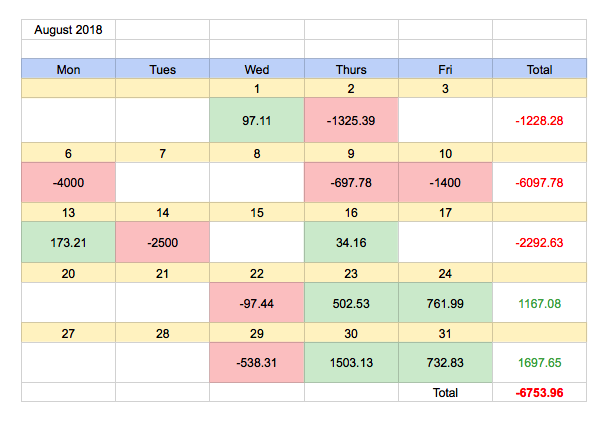 That $4,000 loss was because of a Friday trade. I forgot the ticker, but it halted from like 2:30pm until MONDAY MORNING!! It gapped down and I lost BIG! CRAZY!! The 14th, still working out the bugs... But then, something started to click and change....By the 4th week, I was making more and more, keeping more profits, doing less harm, truly waiting for better set-ups, refining my process, trying to stop chasing at the top near the end of a run...