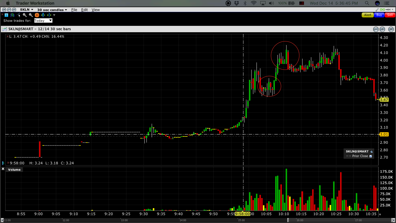 Missed my opportunity with $SKLN on a pattern that has been repeating itself for the last 2 weeks now($IDXG, $NVCN,