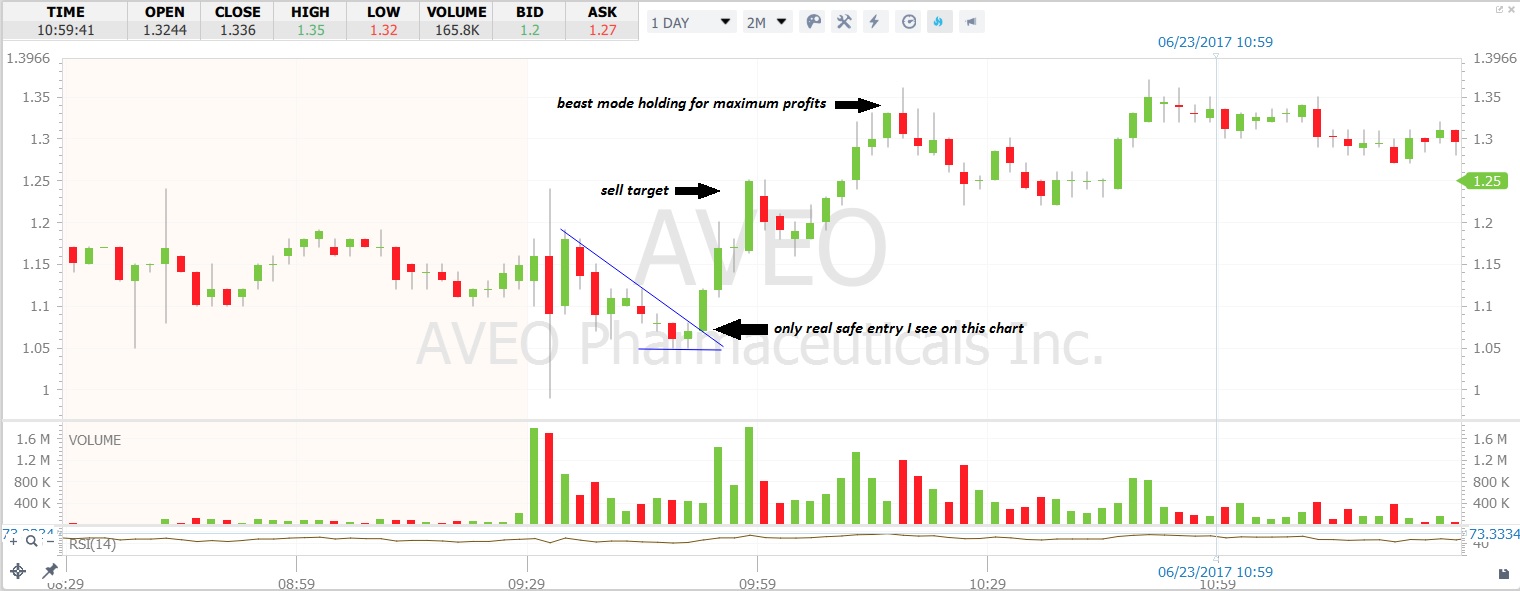 No trades on friday. Only thing worth looking at was $AVEO. Missed my entry (never chase) and watched the rest of the hour or so not seeing anything give a good setup or really moving that much.