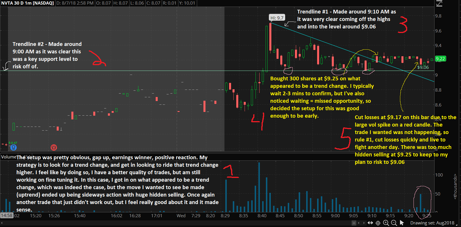 0/2 on my trades so far. As I did with my previous $EKSO trade (https://profit.ly/user/wannabestocktrader/blog/872018-ekso-trade-recap) I'll make a blog post going over what I saw and my line of thinking for this trade. This is mostly to help me get back into things, as the market still feels pretty crappy, and while I have a personal goal by the end of the year trading, I know I shouldn't just #yolo chase something and hope to win that way.