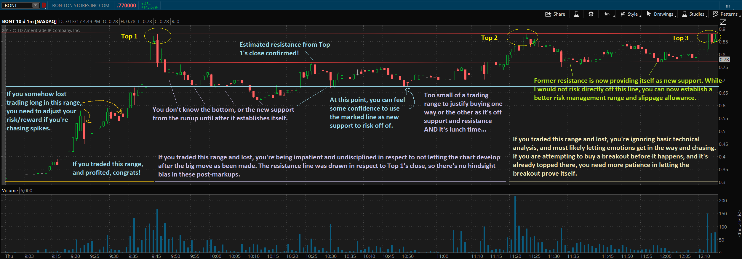 My annotated images are with my thoughts and opinions at the time events were playing out, while trying to avoid any biases in my post-annotations. Hopefully, this will be useful to people who were unsuccessful with their trading of this stock today.