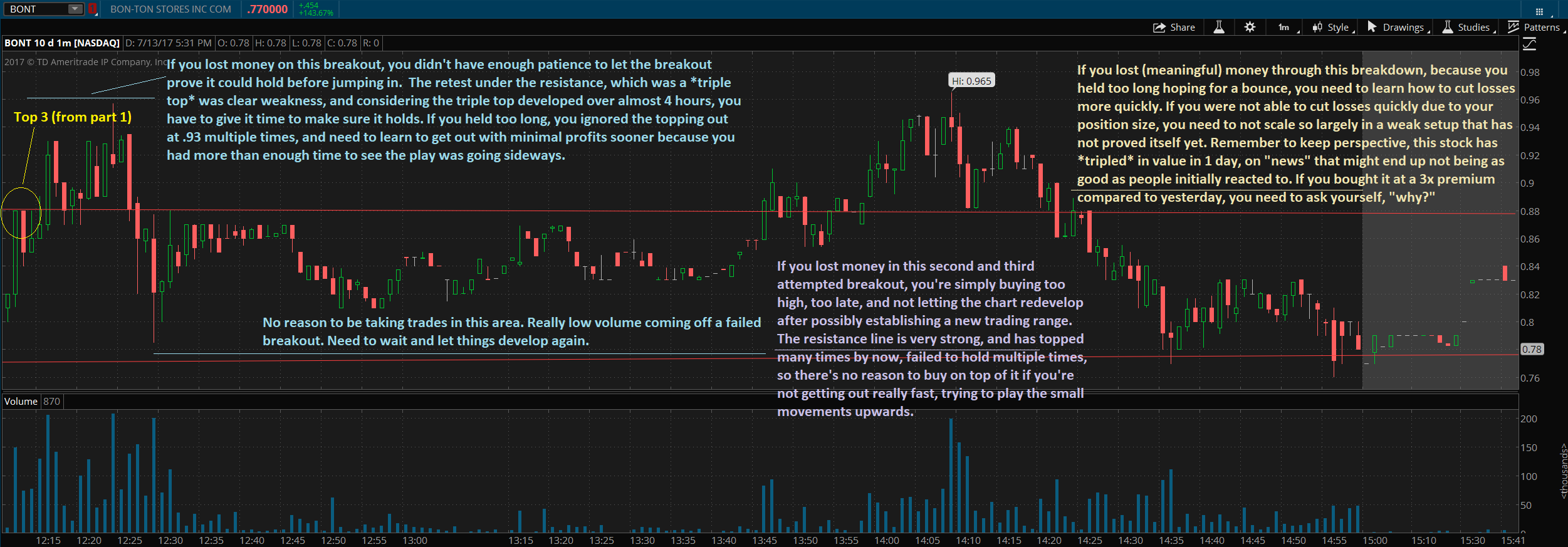 One last thing I should mention in case it was not obvious, my commentary is about the very small trading window opportunities as broken down in each section. Obviously everyone trades a different way, and these are just my views on how this stock could have been played today, but hopefully someone will find it useful if they did not have success and don't understand why.